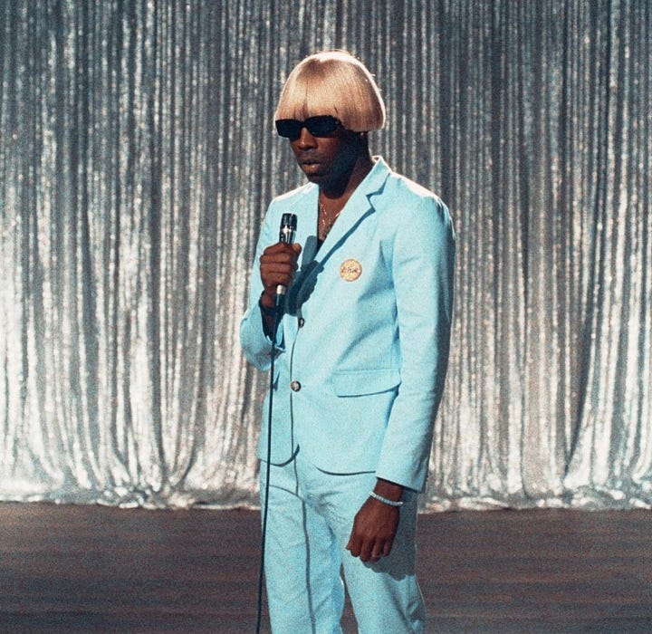 Tyler, the Creator was spinning around in pastel suits and a blonde wig, rewriting what being cool could look like. In fact,“Earfquake”soundtracked my last weeks of high school. Playboi Carti had turned hype itself into performance art; with his fans/hostages waiting for Whole Lotta Red to drop, refreshing Instagram and Reddit like disciples.